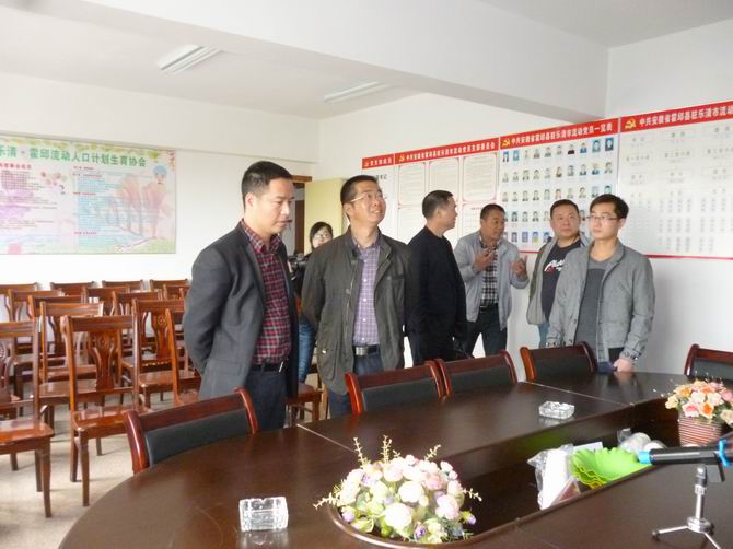 2013年4月10日,乐清市禁毒专项斗争指挥部副指挥黄国宝、乐清市专项斗争禁毒指挥部督查宣传科副科长孔德强在乐清市翁垟街道办事处党工委副书记陈祥浩、翁垟街道禁毒办主任蒋晓阳的陪同下,莅临霍邱县驻乐清市流动人口党支部参观指导工作。霍邱县驻乐清市流动人口党支部办公室主任贾红印带领几位领导参观了党员禁毒志愿者基地、民工维权及计划生育协会等几个办公室,并对我们平时所开展的工作做了简要而又全面的介绍。几位领导听完介绍后,对我们的工作给予了很大的肯定。并希望我们能够再接再厉、继续的保持下去,为禁毒事业做出更多的贡献。