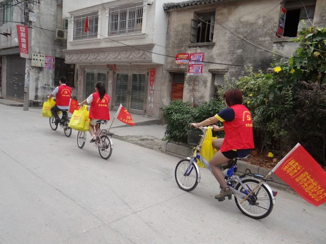为进一步加强禁毒宣传教育力度,提高自我防范能力。2013年9月30日霍邱驻乐清流动党支部书记陈孝明带领霍邱籍党员禁毒志愿者开展了公益自行车队到户一对一新居民禁毒知识宣传教育活动。活动中霍邱党员禁毒志愿者们向新居民群众发放《禁毒法》、禁毒手册及禁毒宣传品500余份