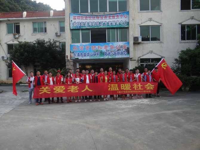为进一步弘扬人道、博爱、尊老、奉献的精神,让敬老院的老人深深地感受到社会主义大家庭的温暖。2016年7月30日,霍邱籍流动党员、预备党员、入党积极分子们在党委书记陈孝明的带领下一大早来到乐清市翁垟街道颐和老年公寓开展“关爱老人,温暖社会”义务清扫活动。