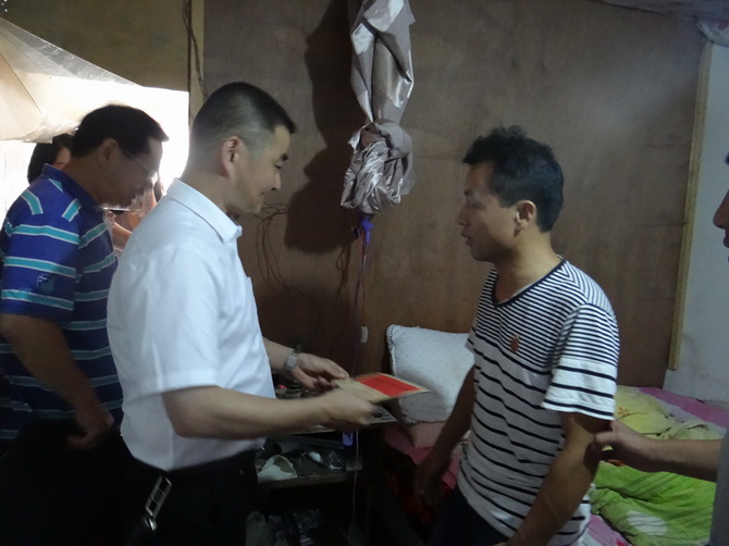 吴副会长等领导一行每到一户安徽籍流动人口家中,都亲自把慰问金送到他们手中,与热心交谈,并仔细询问病情和家庭近况,并嘱托他们要有战胜生活困难的决心。刚刚做完肝移植的李华生激动的说:“ 现在党的政策这么好,各位领导亲自来看望我们,关心我们,真的非常感谢”!