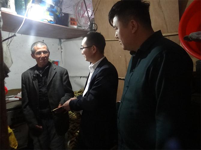 2017年2月13日(农历正月十七),工作站办公室主任贾红印、翁垟服务点点长刘念、柳市服务点点长张纯贵一行分别来到了安徽籍在乐务工人员家里及单位,为他们送去新春佳节的祝福,来自安徽省淮上区的高磊接过1000元慰问金激动地说:“身在异乡,还能得到关心和帮助,感受到家的温暖,感谢工作站的关心,谢谢您们”。贾主任每到一户,都详细了解他们的日常生活情况,并带去了乐清市卫计局的新春祝福和亲切问候。交谈中,贾红印主任鼓励他们要积极面对困难、奋发向上,叮嘱他们在工作的同时也要时刻注意自己的安全,并表示一定会竭尽所能为他们解决一些实际困难。