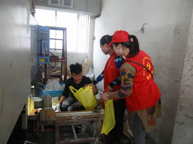 禁毒志愿者向企业员工发放《禁毒法》、《浙江省禁毒条例》、《新乐清人禁毒手册》等各类宣传资料及宣传品,并向他们讲解不同种类毒品所具有的危害性、成瘾性特点,以及新型毒品的识别方法和毒品对自身、家庭和社会的严重危害等,志愿者现场还展示了各种毒品的样本模型,并以案说法为企业员工普及禁毒知识。