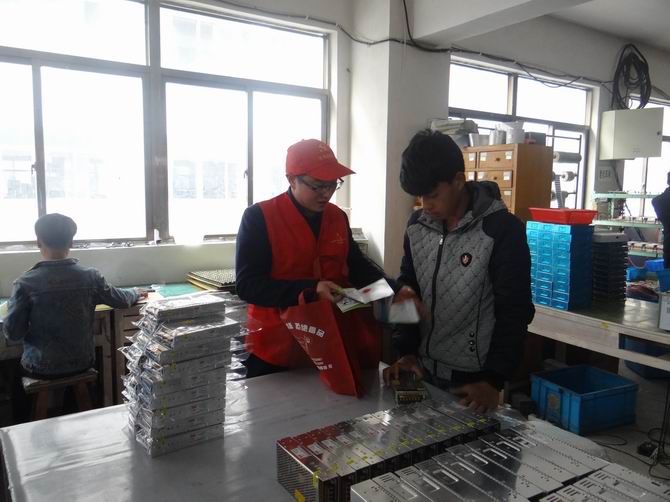 为进一步增强安徽籍企业员工识毒、防毒、拒毒意识,2017年2月17日下午,霍邱县驻乐清市流动人口党委禁毒志愿者基地联合翁垟街道禁毒办走进企业,开展以“无毒企业,你我共建”为主题的禁毒宣传活动。