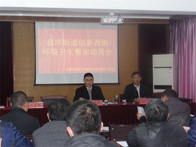 2017年2月27日下午,安徽省流动人口服务管理乐清市工作站与乐清市翁垟街道市场监督管理所联合召开了食品安全监督宣贯培训会及翁垟街道环境卫生综合整治暨创建卫生城市工作动员会,翁垟街道创新西街各经营业主共同参加,会议由工作站站长陈孝明主持,翁垟街道市场监督管理所领导出席并做重要讲话。