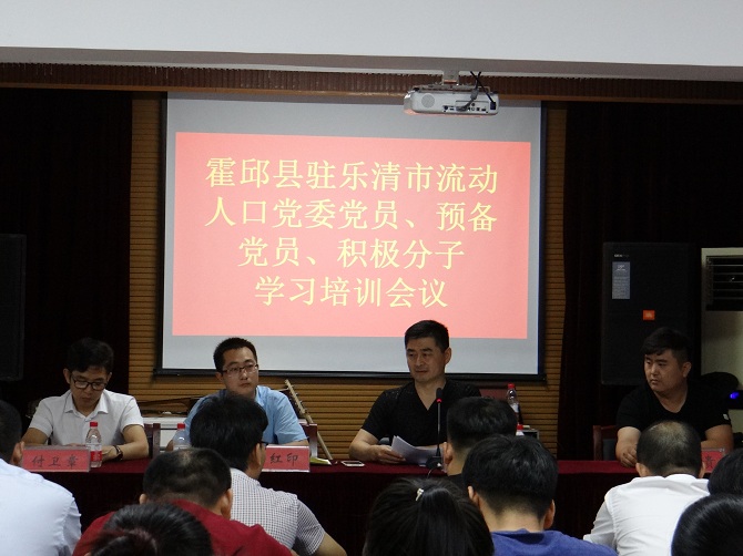 2017年8月30日晚,霍邱县驻乐清市流动人口党委召开党员学习会议,霍邱籍党员、预备党员、积极分子参加,党委书记陈孝明主持会议。