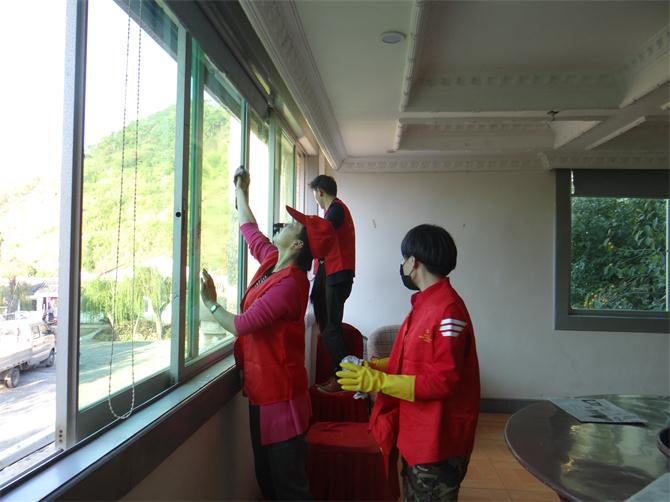 到达敬老院之后,党员志愿者们各自拿好工具积极主动的分成了清扫庭院、清洁窗户和草地维护三个小组,三组党员志愿者分工合作,不放过任何一个角落。虽然很累,但每个志愿者的嘴角始终带着微笑。经过两个多小时的幸苦劳作,敬老院窗明心静,纤尘不染,院内面貌焕然一新。