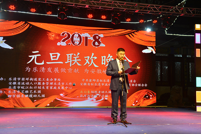 为了营造良好的节日文化氛围,丰富安徽籍在乐流动人口娱乐文化生活。2017年12月26日晚,安徽省流动人口服务管理乐清市工作站在翁垟街道塘下公园举办“庆元旦,迎新春”文艺晚会。翁垟街道办事处副主任邵世静、翁垟街道妇联主席王芊芊、安徽省驻乐清市工作站站长陈孝明等领导出席并观看本次晚会。