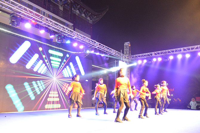 当晚六点,晚会未开始之前,安徽省驻乐清市流动人口计划生育协会联合会工作站与翁垟街道办事处联合开展流动人口卫生计生宣传活动,并现场发放计生宣传品及叶酸片、避孕药、避孕套等计生用品。晚间七点,随着台上《霸王别姬》音乐响起,领跑者幼儿园小朋友们在舞台上劲歌热舞,晚会也正式拉开帷幕。