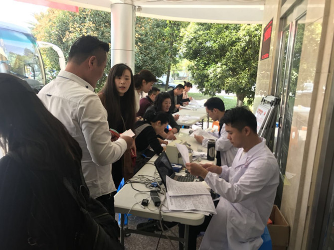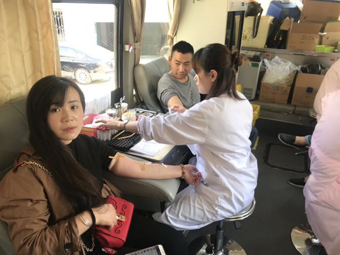 在支部书记张纯贵的带领下,献血者们首先填写个人信息单及报名表,而后进行血压的测量、化验血型等基本检测。献血结束后由医务人员为献血者打印献血光荣证。