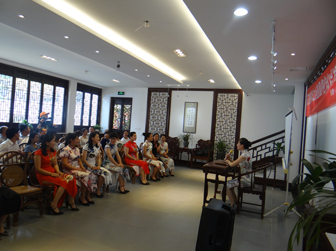 张苗苗首先从旗袍的发展史、旗袍服饰特点、旗袍穿着常识和礼仪等方面的旗袍文化做了详细的介绍。旗袍文化致力于全面提升女性综合素养,不仅仅着力于改变女性的外在形象,更希望提升女性的内涵,也希望通过此次讲座要加大宣传力度,不断弘扬和传承旗袍文化,通过对传统旗袍文化的颂扬和传播,让更多人喜欢和关注旗袍。