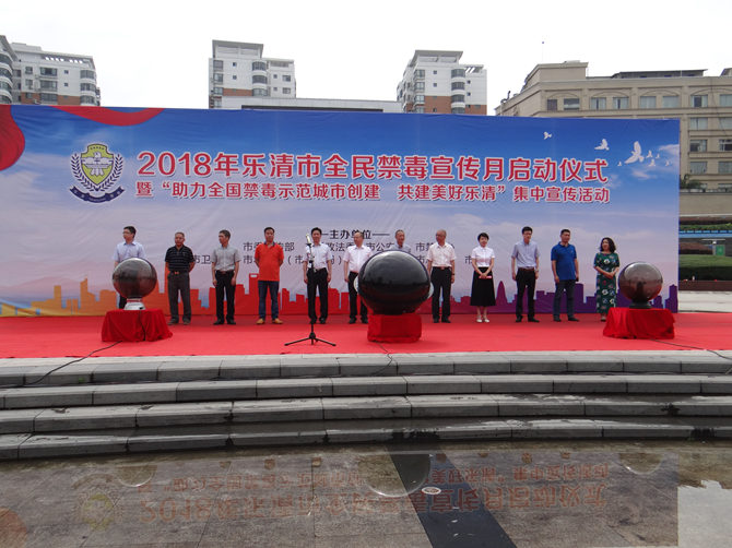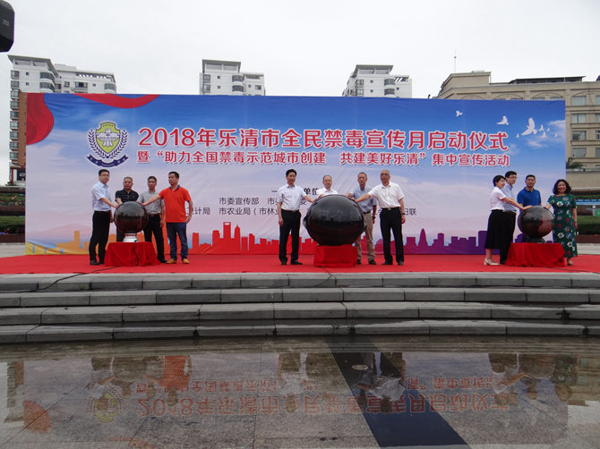 随后,吴松海、郑章辉、谷乐荣与其他部门的负责人共同按下启动球,乐清市禁毒网络联盟正式成立,同时2018年全民禁毒宣传月也正式拉开了序幕。
