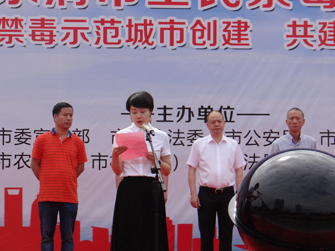 禁毒委成员单位代表市妇联、乡镇(街道)代表柳市镇分别就助力全国禁毒示范城市创建进行表态发言。