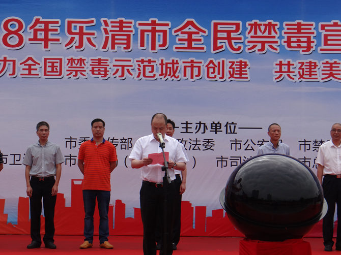 在启动仪式上,乐清市委副书记、政法委书记、禁毒委常务副主任吴松海就创建全国禁毒示范城市工作进行讲话。