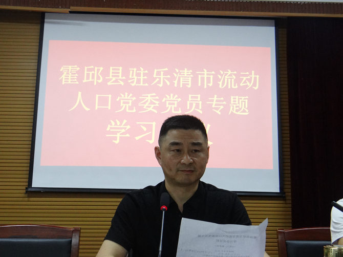 为深入学习贯彻习近平总书记重要讲话精神,2018年6月18日晚,霍邱县驻乐清市流动人口党委召开专题学习会,霍邱籍党员、协会联合会会员共50多人参加学习。党委书记陈孝明主持会议。