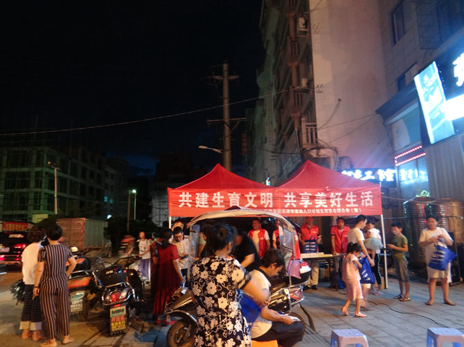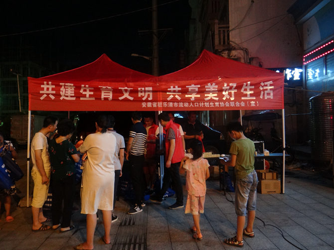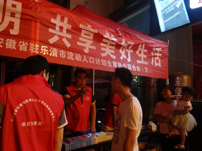 在第29个世界人口日来临之际,2018年7月11日晚,安徽省驻乐清市流动人口计划生育协会联合会在翁垟街道开展了以“共建生育文明,共享美好生活”为主题的“7.11”世界人口日纪念宣传活动。