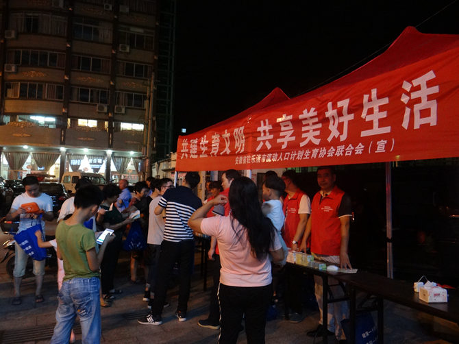 活动现场,通过悬挂横幅、设立宣传品摆放台向过往群众免费发放《安徽省人口与计划生育条例》、《生育关怀》、《健康66条》等宣传折页和避孕药具,积极向过往流动人口积极宣传弘扬婚育新风,关爱弱势群体,共创健康幸福生活的婚育理念,引导他们对美好生活的向往。