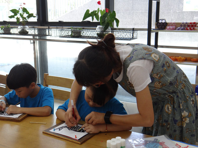 上午10点,孩子们在图书馆“一楼阳光书房”开启了一场具有乐清特色的细纹刻纸体验课。张化化老师给孩子们展示了许多精美的细纹刻纸作品,并亲自为小朋友们做示范。在老师的细心指导下,孩子们动手制作了属于自己的第一幅细纹刻字作品,非常开心。