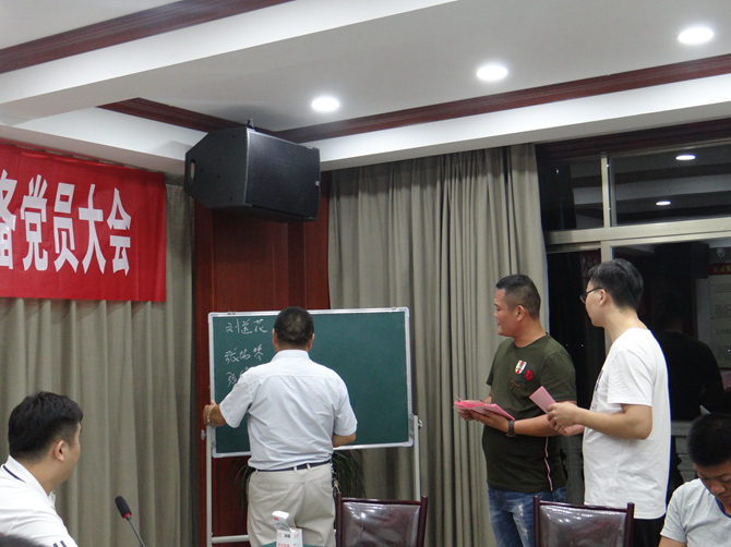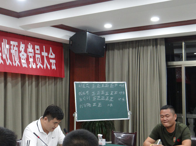 支部大会应到会38人,实到会34人,通过无记名投票表决,刘道花获得29票,张纯琴获得29票,张俊利获得25票,张守梅获得10票,决定接收刘道花、张纯琴、张俊利为预备党员,并报上级党委审批。