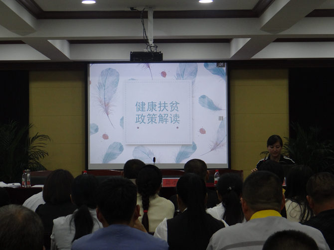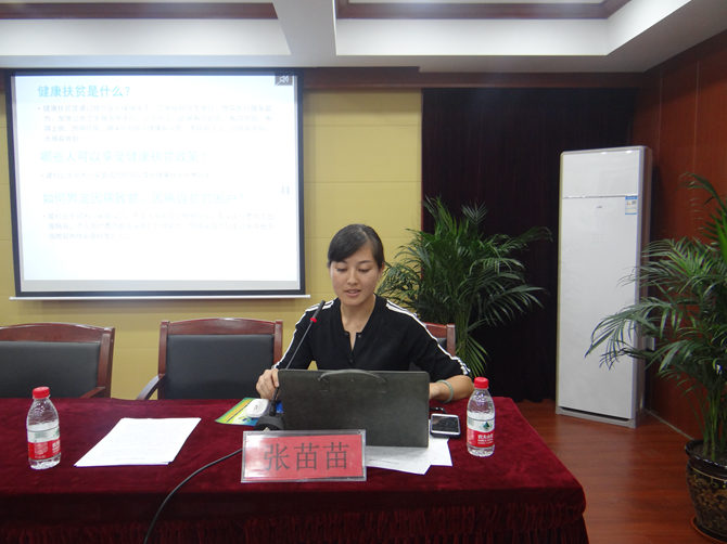 讲座中,张苗苗以PPT的形式讲解了什么是健康扶贫,健康扶贫有哪些优惠政策,如何办理慢性病就诊证,看病的费用如何报销等。