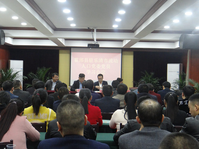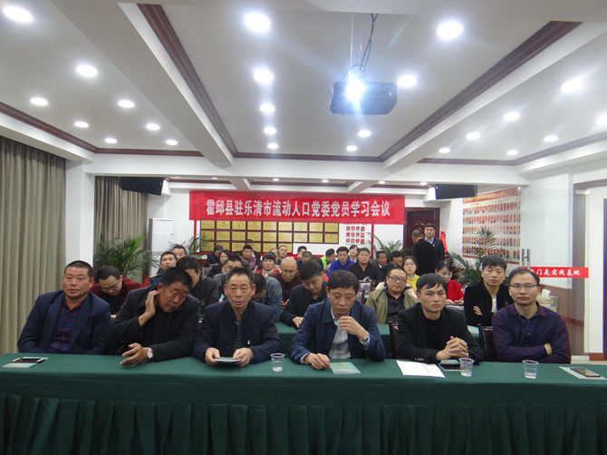 2018年11月26日,霍邱县驻乐清市流动人口党委召开党员教育专题学习会议。党委组织委员张纯贵主持会议。60多名霍邱籍流动党员、预备党员、积极分子参加学习。