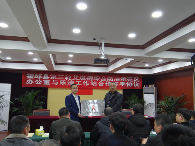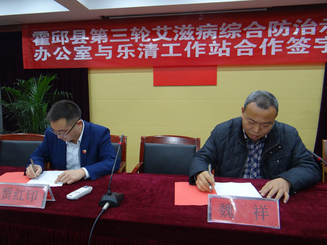 会上制定并通过了霍邱县艾滋病综合防治示范区多部门和社会参与项目建议书,工作站副站长贾红印代表工作站与霍邱县疾病预防控制中心签订霍邱县第三轮艾滋病综合防治示范区办公室与乐清工作站合作框架协议。
