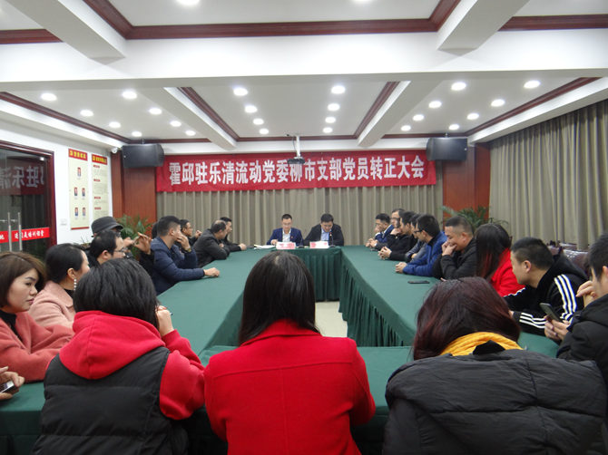 2018年12月22日,霍邱县驻乐清市流动人口党委柳市支部召开预备党员转正大会。本次大会主要是讨论预备党员刘道红、张俊松、王震3名同志能否按期转为正式党员相关事宜,会议由支部书记张纯贵主持。