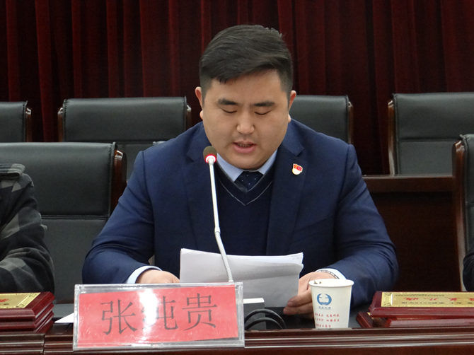霍邱县驻乐清市流动人口党委组织委员张纯贵宣读表彰文件。