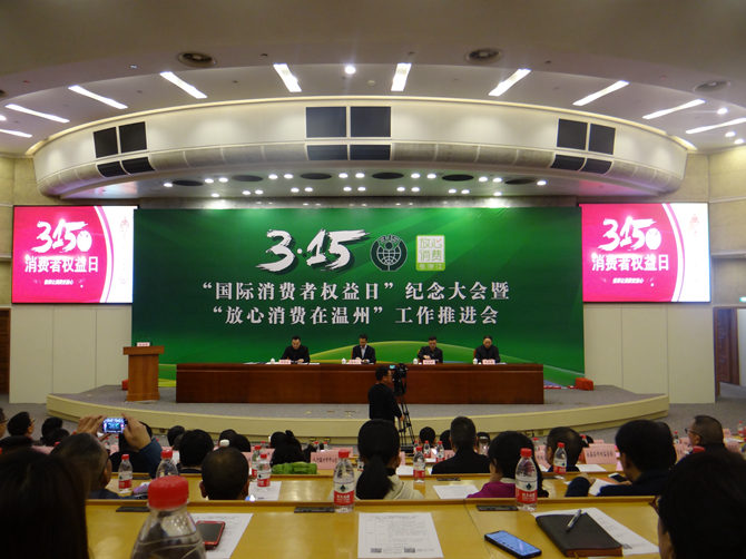 为深入贯彻落实党的十九大精神,推动消费环境持续改善,不断满足人民日益增长的美好生活需要。3月14日上午,2019年“3·15国际消费者权益日”纪念大会暨“放心消费”工作推进会在温州市人民大会堂召开。