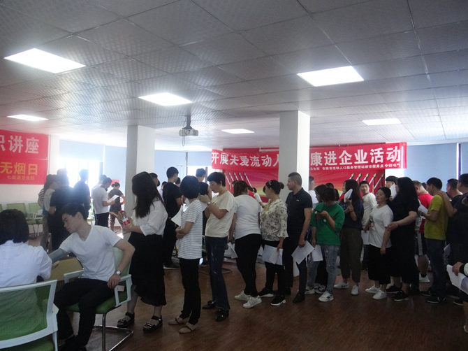 随着生活节奏的加快,工作压力的增大,企业员工们的身体健康突显得尤为重要。为纪念计生协成立39周年,计生协第21个“会员活动日”,2019年6月1日,安徽省驻乐清市流动人口计划生育协会联合会特别邀请柳市镇七里港卫生院体检科到中群电气有限公司(皖籍在乐企业)开展免费健康体检活动。