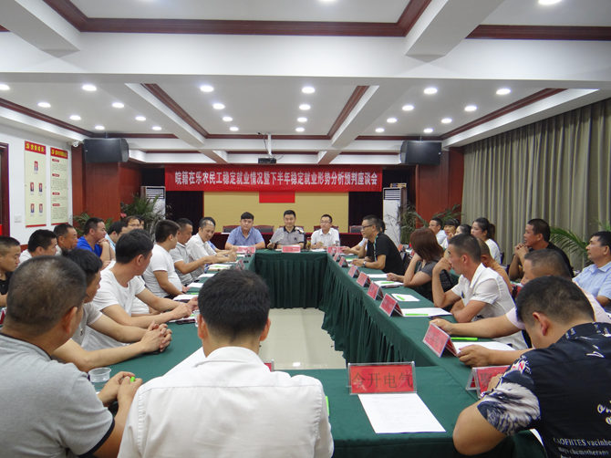 为确切了解掌握皖籍在乐农民工就业情况,有针对性地做好以稳定就业为重点的农民工综合服务工作。2019年8月8日,霍邱县驻乐清市流动人口党委、安徽省驻浙江省乐清市皖籍农民工综合服务站召开皖籍在乐农民工稳定就业情况暨下半年稳定就业形势分析预判座谈会。60多名皖籍企业、农民工代表参加座谈会。党委书记、服务站站长陈孝明主持会议。