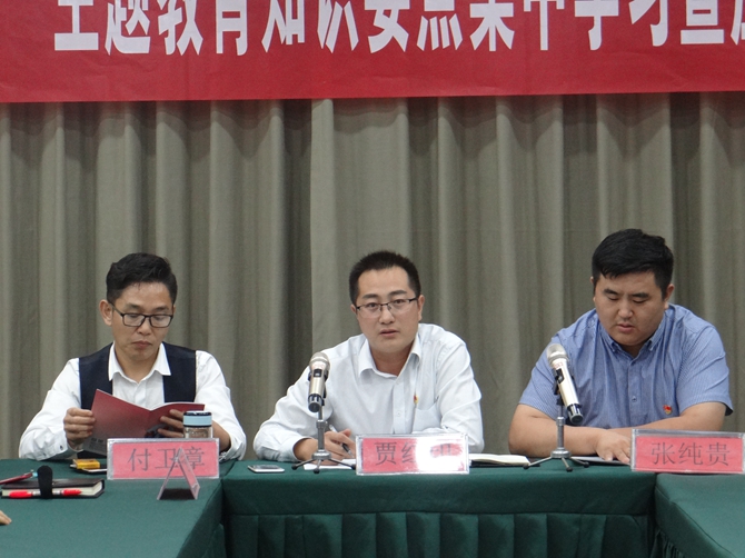 党委副书记贾红印带领大家回顾了“不忘初心 牢记使命”主题教育应知应会知识,包括总要求、根本任务、四个贯穿始终、具体目标、三个结合等各个方面。