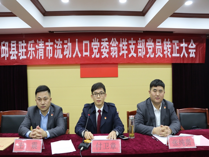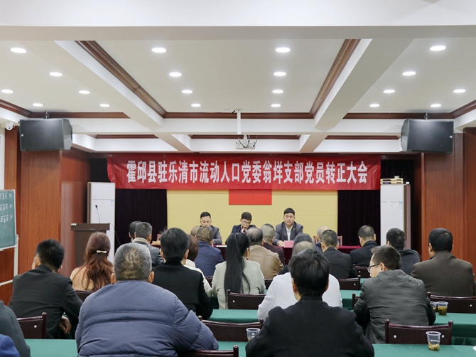 2019年12月22日,霍邱县驻乐清市流动人口党委翁垟支部召开党员转正大会。党支部书记付卫章主持会议。