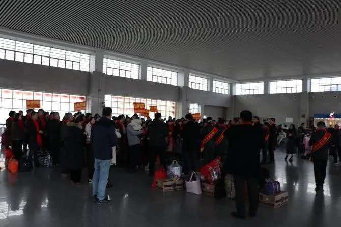 在合肥南站,前来接站的工作人员早已到达。他们中有负责交通引领的公安交管,有霍邱县计生协安排的医疗救助车,有团县委组织的青年志愿者,更有县人社局负责全程组织。老乡们在合肥南站将转乘“爱心大巴”返回霍邱,带着一路的温暖和喜悦回家过年!