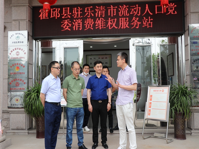 为申报建设浙江省首批“法治市监”建设宣传教育示范基地,2020年5月14日,温州市市场监督管理局法规处副处长汤凌毅、乐清市市场监督管理局法规科科长管敏益等领导在乐清市翁垟街道市场监督管理所所长郑文博的陪同下莅临霍邱县驻乐清市流动人口党委消费维权服务站参观考察。