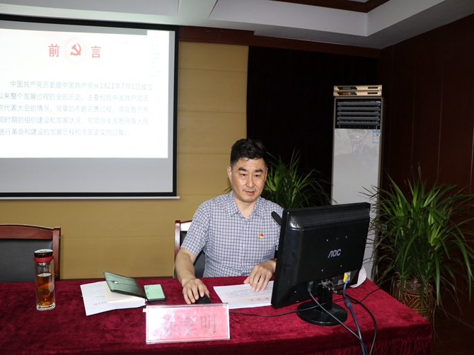 学习过程中,陈孝明以PPT的形式为大家介绍了党的成立时间及党发展的光辉历程,生动的阐述了党由小变大、由大向强,成为世界第一大党的历程。讲述了学党史知党情的重大意义,教育党员、预备党员、入党积极分子要学党史讲廉洁、不忘初心。他强调历史是最好的教科书,“学习党史、国史,是坚持和发展特色社会主义、把各项事业推向前进的必修之课”。同时,陈孝明还带领大家学习了习总书记的讲话精神,号召大家做合格党员、永远跟党走。在场的党员、预备党员、入党积极分子聚精会神,认真学习,现场的学习氛围浓厚。