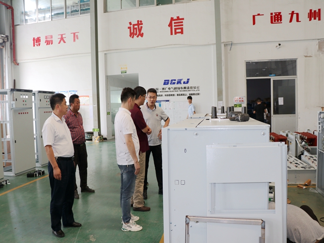 2020年9月16日,合肥高新区霍邱现代产业园工委书记、管委会主任傅壮、产业园财税金融局局长肖劲松、产业园规划建设局局长刘晓东、霍邱县驻上海招商联络处主任彭元军在党委书记陈孝明的陪同下参观考察了博广电气有限公司。在公司负责人的带领下参观了企业的生产车间、产品展示区、办公场所等地,详细了解了企业发展、生产规模、销售情况和物流发货等方面情况。