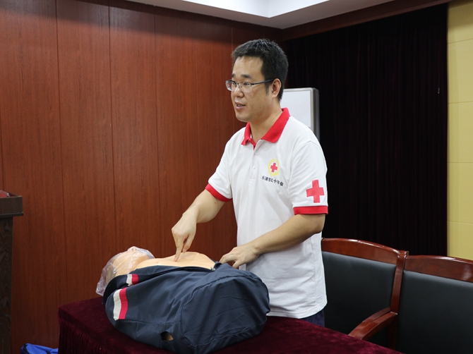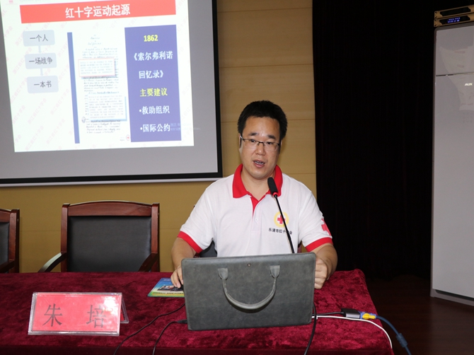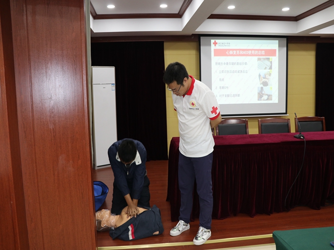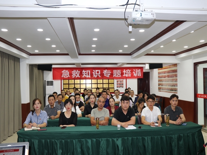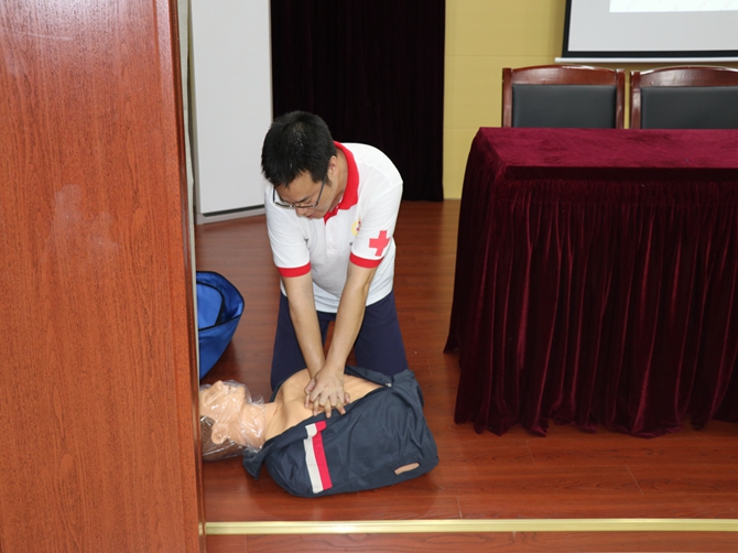 会上,朱老师以PPT的形式,结合生动的案例和视频,深入浅出的讲解了红十字会运动的起源、主要工作职责、各类急救知识、心肺复苏技术要点、胸外心脏按压要领、如何使用AED及AED的使用注意事项等内容。