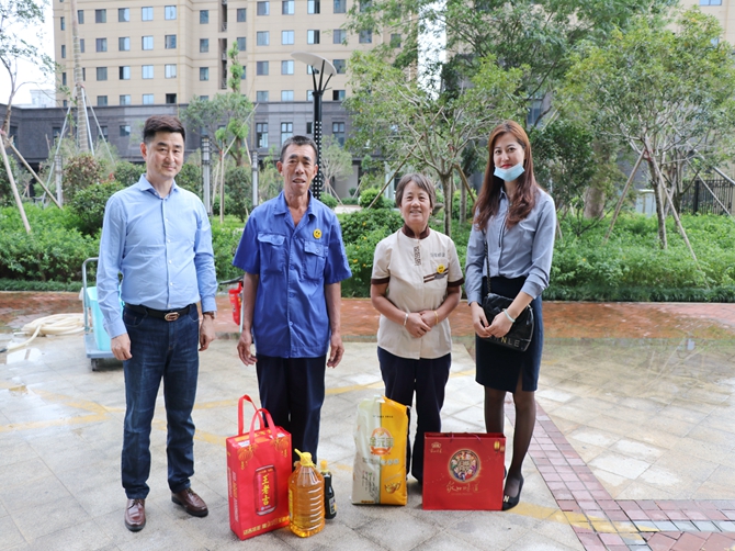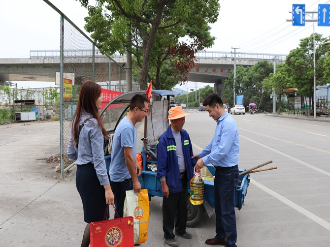 当日下午,班子成员先后走访慰问了戚明运、张敏等7位环卫工人。为他们送上月饼、大米、豆油等慰问品。协会会长、服务站站长陈孝明对奋战在一线的“城市美容师”们表示崇高的敬意和衷心的感谢。城市的干净整洁来自于每一位环卫工人的辛勤付出,关心、慰问环卫工人的举措,送的是物资,暖的是人心。