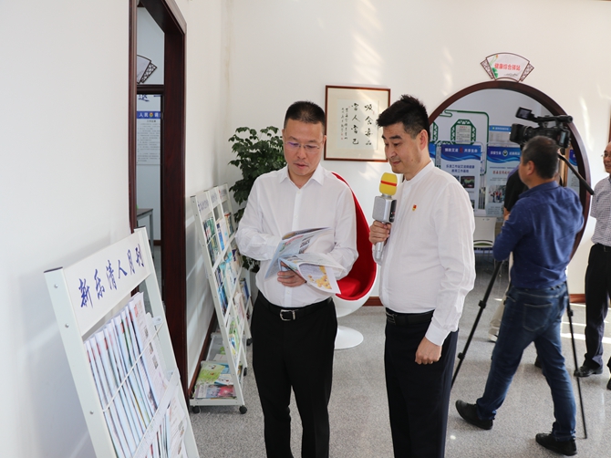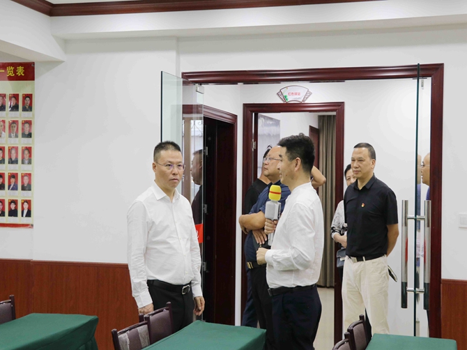 在陈孝明的讲解引领下,叶伟琼一行依次来到综合服务大厅、健康综合驿站、禁毒办公室、向日葵心语驿站等职能办公室,认真查阅了协会、禁毒基地工作历程展板等台账资料。