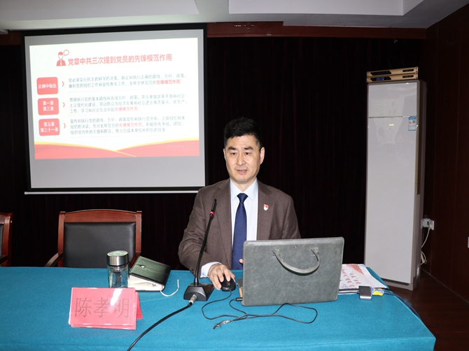 党委书记陈孝明以PPT的形式,围绕深刻领会什么是党人的先锋模范作用、战“疫”一线对党员先锋模范作用的要求、战“疫”一线如何发挥党员先锋模范作用等三个方面阐述了共产党员在人民群众中应该产生的影响。他希望党员们发挥骨干、带头和桥梁作用,处处以身作则,走在群众的前面,给群众做表率和榜样。