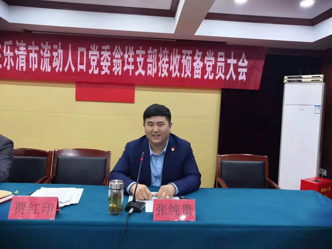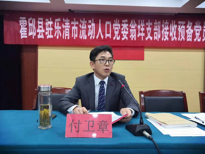 2021年4月11日晚,霍邱县驻乐清市流动人口党委翁垟支部召开接收预备党员大会。党委副书记贾红印、党委组织委员张纯贵、翁垟支部书记付卫章参加会议。会议由贾红印主持。