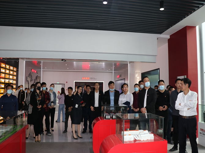 在德力西集团接待处处长陈康美的带领下,大家先后参观了德力西的形象展示厅、党建展厅、智慧工厂车间、环保展区等,了解德力西集团的企业发展历程,感受改革开放史。
