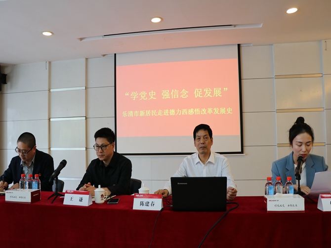 随后在德力西集团会议室召开学习教育会议,乐清市新居民服务中心党组成员、副主任张志杰、副主任倪依依、乐清市委宣传部副部长、社科联党组书记王谦、乐清市委讲师团成员、德力西集团党委书记陈建春出席会议,会议由倪依依主持。