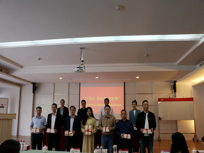 向新居民党员代表赠送党史学习教育资料