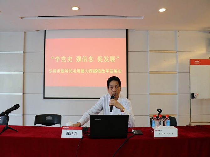 乐清市委讲师团成员、德力西集团党委书记陈建春为大家讲解了“春天的故事——改革开放史”。讲解了改革开放的过程、乐清改革前后的变化及德力西改革开放发展之路。