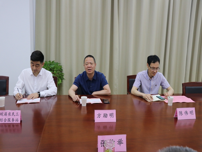 陈孝明首先对乐清、霍邱两市县人社部门的信任表示衷心的感谢,此次参观交流是在“党委+服务站”牵头下顺利促成的,通过考察交流,实现了两地党委政府的信息互通,资源共享。