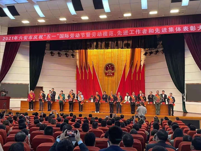 2021年4月29日,六安市庆祝“五一”国际劳动节暨劳动模范、先进工作者和先进集体表彰大会在六安市行政中心大会堂隆重召开。省委常委、市委书记孙云飞,市委副书记、市长叶露中,市人大常委会主任付新安,市委常委、副市长束学龙等相关领导出席会议。