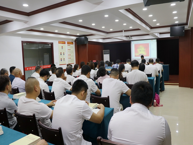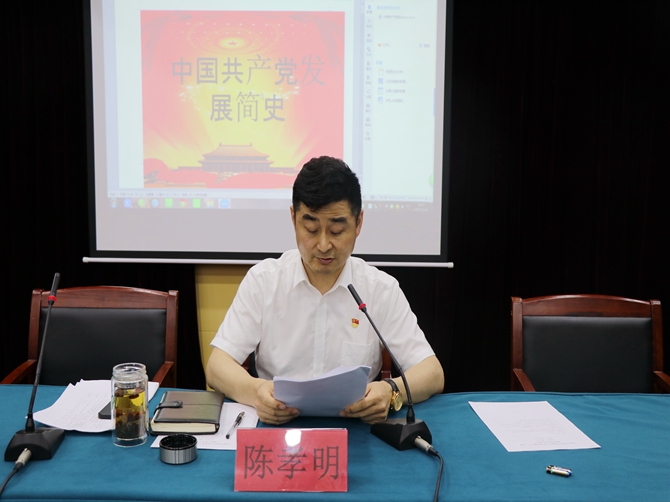党委书记陈孝明从中国共产党第一次代表大会开始讲起,以中国共产党召开的历次代表大会为主线,全面系统回顾了中国共产党带领人民群众前赴后继,英勇奋斗的革命历程。带领大家重温了中国共产党百年历史,让大家对中国共产党联系群众的实践和经验有了进一步的了解和认识。