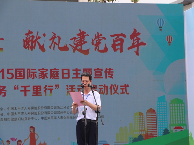 在2021年“5.15国际家庭日”即将到来之际,为促进家庭健康发展,弘扬家庭美德,构建和谐幸福家庭,围绕倡导健康生活方式理念,进一步提高家庭健康素养、婚育观念和家庭发展能力,2021年5月15日,浙江省5.15国际家庭日主题宣传活动暨计生协会志愿者服务“千里行”活动启动仪式在乐清市清和公园隆重举行。