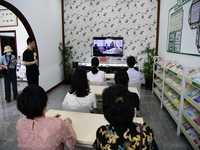 潘祖光副会长观看乐清市皖江红计划生育家庭发展中心纪实主题片。